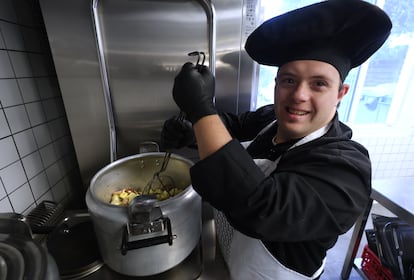 Para sacar adelante sus cursos, en Vrulé han ideado una metodología propia, que consiste en dividir la formación por semanas, para que sus alumnos puedan compaginarla con sus rutinas y actividades, que les suelen ocupar buena parte del día. Van a clase una semana al mes y, en total, tienen que completar 15 semanas lectivas, además de las prácticas. Al final, obtienen un certificado de profesionalidad con el que pueden trabajar. Sus alumnos tienen diferentes tipos de discapacidades intelectuales, aunque deben poder leer y escribir, contar con habilidades de comprensión y habilidades motoras finas. “No podemos llegar a todos los perfiles, porque al final estamos en una cocina”. Actualmente cuentan con 48 alumnos —con unos ocho por clase— y aseguran que cada vez tienen más demanda.