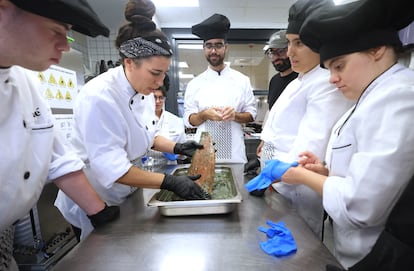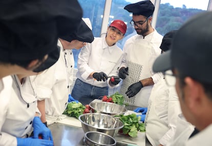 Una de las mejores vías que han encontrado para ello son las cenas de los viernes, en las que los alumnos ponen en práctica todo lo que han aprendido durante la semana dando de comer a sus familiares y a clientes externos (la cena cuesta 25 euros). “Los padres flipan mucho cuando ven aquí a sus hijos currando como uno más en la cocina, montando platos y dando un servicio. Nos parecía muy importante hacerles partícipes de su formación de esta manera”, cuenta Sandra.