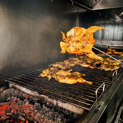 Esta casa de comidas dio con su receta por accidente, cuando una de las máquinas en las que hacían pollos asados se rompió y tuvieron que tirar de las brasas. “El resultado tuvo tanto éxito entre la clientela, que cien años después sigue siendo el plato estrella. Despachamos entre 600 y 700 pollos al día”, explica Homero, el propietario de tercera generación.
