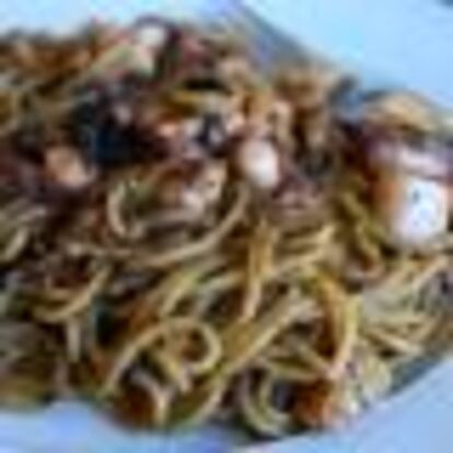 ESPAGUETIS CON PULPO Y AJO NEGRO