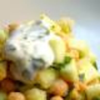 ENSALADA DE GARBANZOS Y PEPINO CON SALSA DE YOGUR, MENTA Y ENELDO
