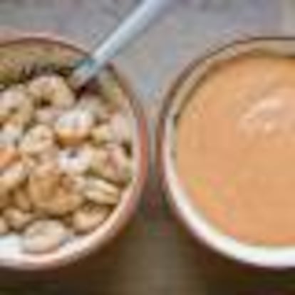 GAZPACHO DE MANGO CON GAMBAS PICANTES