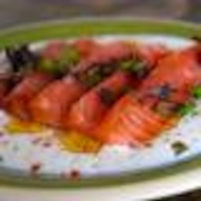 Pasta, pescado azul y el toque cítrico y fresco del limón, todo envuelto por una salsa cremosa de yema de huevo, tomate seco y ajo confitado.