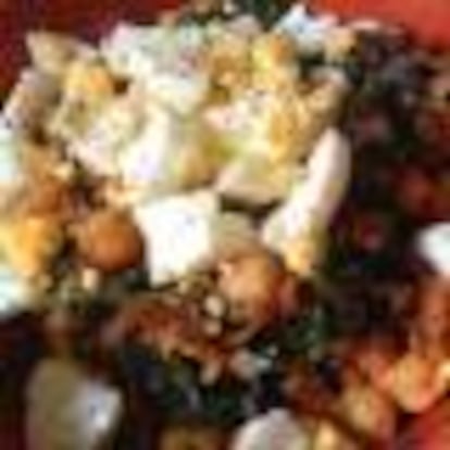 ESPINACAS SALTEADAS CON GARBANZOS Y HUEVO DURO