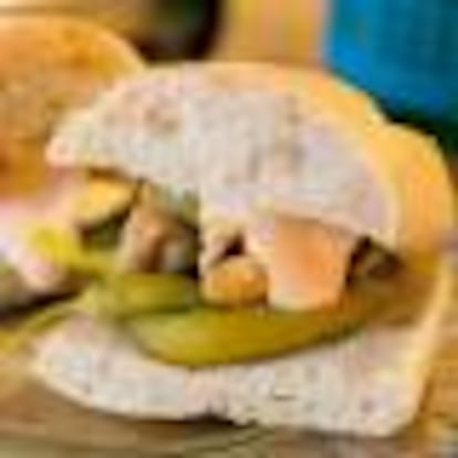 BOCADILLO DE GUINDILLAS Y MEJILLONES CON MAYONESA DE PIMENTÓN
