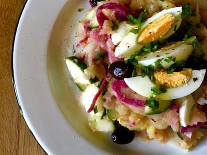 María de la Fuente, trabajadora en Primavera Sound, sigue otro ritual muy distinto cuando va a O Grove, Galicia. "Aparte de la nevera con aguas y sandía, siempre nos llevamos a la playa una empanada gallega de berberechos o zamburiñas", afirma de la Fuente. ¿Y qué pasa si no comes carne? Chiara Bombardi, vegetariana y propietaria del restaurante barcelonés Rasoterra, me transporta a una playa utópica sin mahonesas radioactivas ni tocino pocho. "Un termo con gazpacho o ajoblanco con melón; ensalada de arroz o tabulé; bocadillo mediterráneo con olivada, queso fresco, tomates secos; mucha fruta y un buen queso… La tortilla de patatas la prefiero preparar para pícnics, no para la playa", asegura la restauradora italiana.