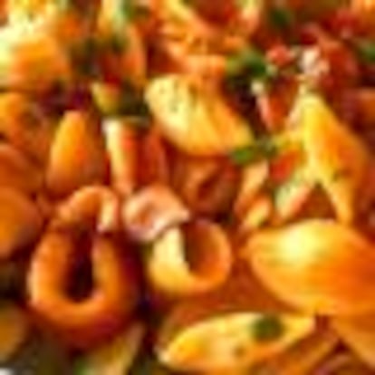 Cuando aparece la pasta en escena, un guiso rápido de calamares se convierte por arte de magia en una salsa.