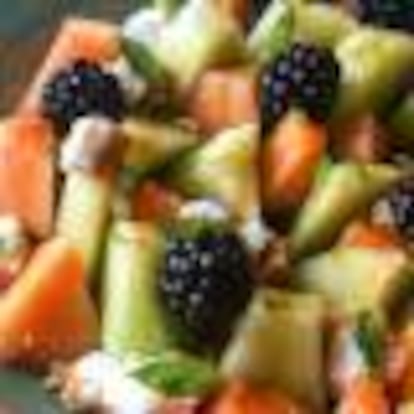 MACEDONIA DE MELÓN CON MORAS Y REQUESÓN