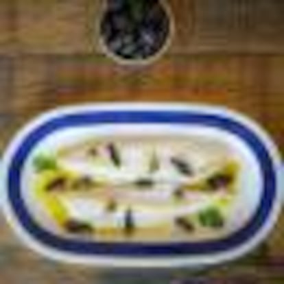 El lenguado es uno de los pescados que tiene en abril su fecha ideal de consumo. En este plato se acompaña de algo tan sencillo de cocinar como una salsa de aceitunas.