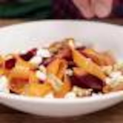 Hay ensaladas muy ricas y fáciles de preparar más allá de la típica de lechuga. Esta, con productos tan de temporada como la zanahoria o la remolacha, es un buen ejemplo.