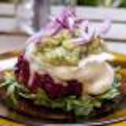 A esta hamburguesa vegetal no es capaz de resistirse ni el más carnaca. Esta es de remolacha, pero puedes utilizar coliflor, brócoli, berenjena o zanahoria.