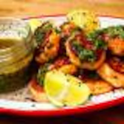 Marisco, una plancha y una buena salsa a base de limón y aceite: si esta combinación ya te suena bien, añádele el toque aromático de la albahaca y unos pistachos. Ahí lo tienes, el verano hecho aperitivo.