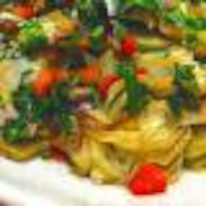 ALCACHOFAS BRASEADAS CON VINAGRETA DE ANCHOA, CHILE Y PEREJIL
