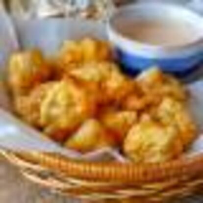 Jugosos trozos de rape, gracias a un marinado previo en limón, con un crujiente rebozado a la romana, un aperitivo asturiano tradicional del que podríamos comernos un cubo.
