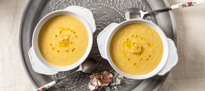 Si cuando encendemos el horno para cocinar cualquier cosa añadimos unas cabezas de ajos, conseguiremos una versión suave y confitada de los mismos. Los podemos usar en platos como esta sabrosa crema.