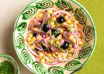Además, te permite jugar un poco con los ingredientes: el aceite de las anchoas se convierte en un aliño que liga todos los ingredientes, pero puedes usar en su lugar sardinillas. Los garbanzos también pueden sustituirse por la legumbre cocida que tengas más a mano, y el perejil fresco, que da ese golpe de color y aroma a cada bocado, puede cambiarse por cilantro o albahaca. Aliñas con gracia el conjunto y… oye, que ya lo tienes. Nos lo vas a agradecer.