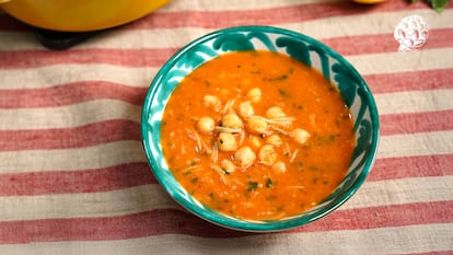 Una de las grandes ventajas de esta sopa es que, en su versión más sencilla, se puede preparar con garbanzos de bote, y no requiere de sofritos ni refritos: basta con ir añadiendo ingredientes a la cazuela. La potencia la ponen las especias –canela y comino–, y otros elementos como el ajo, el tomate concentrado, el limón y la harissa, una pasta picante fácil de encontrar en las tiendas de alimentación magrebíes.