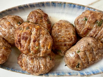 Como suele pasar con las recetas populares, no hay una única forma correcta, pero sí una idea clara de lo que deben ser: aromáticos, tiernos y jugosos. No tienen mucho que ver con una hamburguesa convencional. Aquí la carne se trabaja, se mezcla con mimo y se deja reposar para que gane textura y sabor. El resultado es un bocado suave, casi esponjoso, con ese punto fresco de las hierbas que los hace distintos.