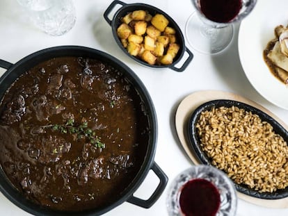 Plat Únic recupera el espíritu de las fondas, donde a cualquier hora del día encontrabas un solo guiso de temporada. Tres guarniciones y un postre neoviejuno completan la breve pero deliciosa oferta del local barcelonés.