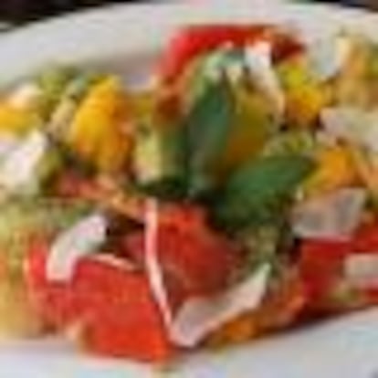 Si coges un montón de frutas tropicales y las tratas como si fueran hortalizas, consigues una ensalada que puedes servir como primer o segundo plato.