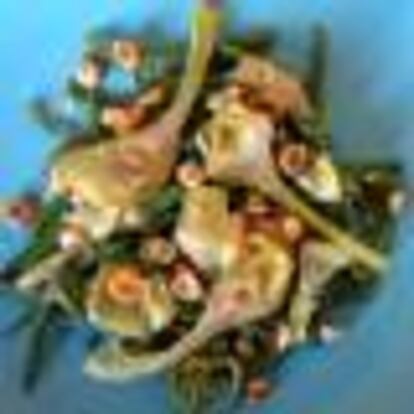 ALCACHOFAS CON JUDÍAS VERDES, AVELLANAS Y LIMÓN MARINADO