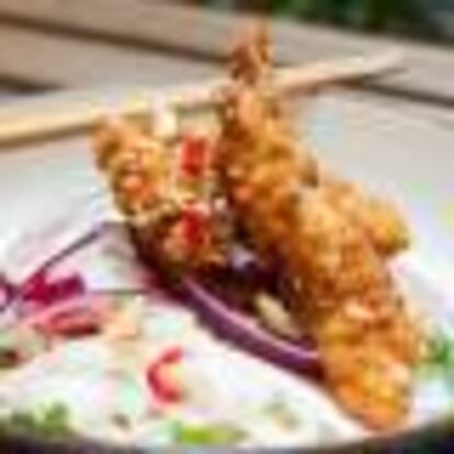 SOPA FRÍA DE COCO, LIMA Y POLLO CRUJIENTE