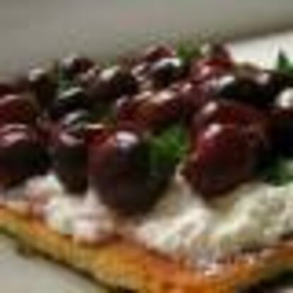 El 'sablée' bretón es bastante contundente, así que acompañarlo de frutas tirando a ácidas como las cerezas es clave. Para que el postre resulte orgiástico, añadimos una capa de lácteo que le dé cremosidad.