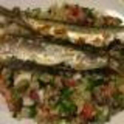 SARDINAS CON BOLGUR MORUNO, HIERBAS AROMÁTICAS Y PISTACHO