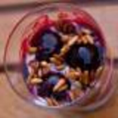 POSTRE DE CEREZAS, YOGUR Y PIÑONES