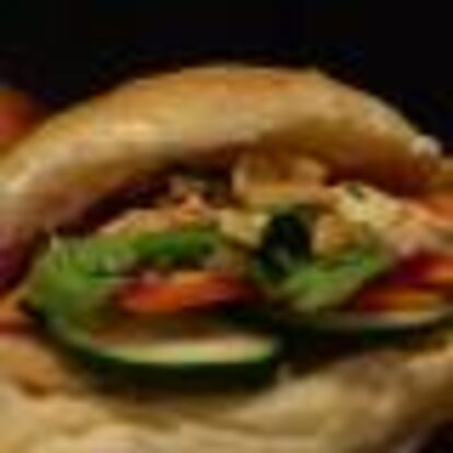 Panceta tierna y crujiente, encurtidos caseros y una salsa con mucha vidilla son los intérpretes principales de este bocadillo de inspiración vietnamita.