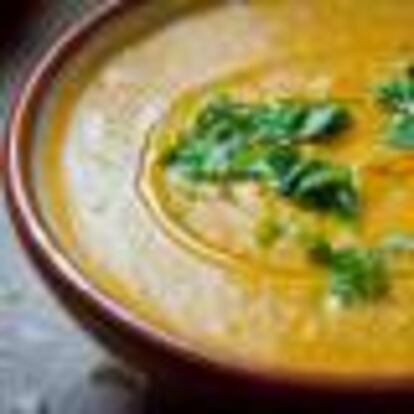 Una crema normal y corriente, con ligeros toques orientales: leche de coco en vez de nata, un poco de chile, jengibre fresco, comino y lima.