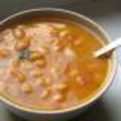 Un caldo ultracremoso y un toque final de tomate natural y albahaca. Un potaje a priori pesado que se convierte en algo fresco y casi ligero.