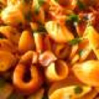 Cuando aparece la pasta en escena, un guiso rápido de calamares se convierte por arte de magia en una salsa.