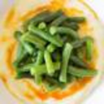 Una vuelta cremosa a las judías con patatas y refrito de ajo de toda la vida. Pero con huevo frito o escalfado por encima, que lo mejora todo.