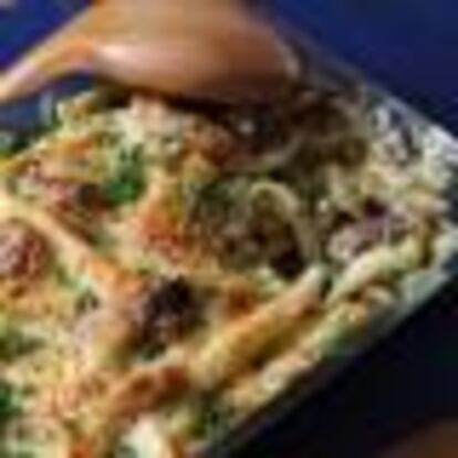 PASTA GRATINADA CON BUTIFARRA Y BERENJENA