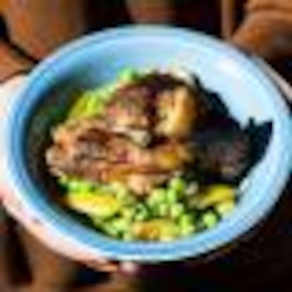 Un corte de cordero que se viene arriba en una combinación dulce, ácida y aromática con guisantes, miel, mostaza y ralladura de limón.