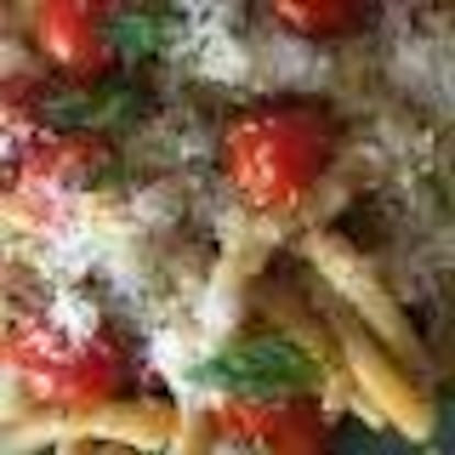 Como una ensalada de pasta, pero en su versión caliente: con los tomates jugosos y ligeramente caramelizados.