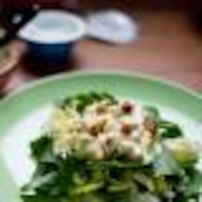 ENSALADA DE ESPINACAS, GARBANZOS CRUJIENTES Y YOGUR