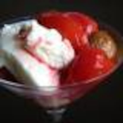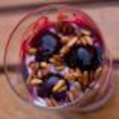 POSTRE DE CEREZAS, YOGUR Y PIÑONES