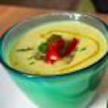Esta sopa, ligera gracias al calabacín y la cebolla, y cremosa por el aguacate y el yogur griego, se puede tomar fría y acepta infinidad de guarniciones.