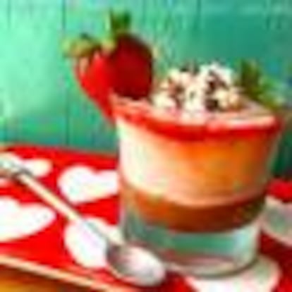Rendimos homenaje a las ochenteras fresas con nata, expulsadas del paraíso por culpa de la nata de espray, con esta mousse con poquísimo azúcar añadido y un toque de chocolate.