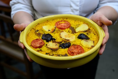 La Cantina de Ruzafa está llena. A menudo es difícil conseguir mesa y eso tiene que ver con la economía circular que propone y la relación que ha establecido con el barrio. Iluminada por un patio interior enorme sin servicio (que Davó quiere ofrecer como refugio climático al Ayuntamiento), la sala está llena de gente muy mayor y muy joven, de extranjeros y locales, de gastrónomos y curiosos, además de una buena cantidad de vecinos. Muchos pasaron allí semanas entrando y saliendo para ayudar desde Ruzafa a los afectados de la dana. “Estoy orgullosa de la diversidad que se ve en la sala y de cómo reaccionamos aquel mes. Aquí estaba el barrio entero metido. Descubrimos que no todo era turismo, que existía barrio. Fue un momento de inflexión para todos”.