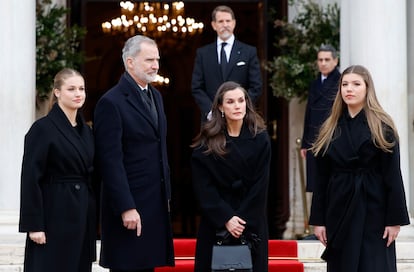 La última vez que asistió a un compromiso familiar fue el pasado 19 de enero, en el funeral de Irene de Grecia, hermana de su abuela, la reina Sofía. La infanta acudió a la catedral Metropolitana de Atenas acompañada de sus padres y su hermana, que fueron recibidos por Pablo de Grecia (sobrino de la reina emérita). Fue la primera vez que, de manera oficial, la princesa Leonor y la infanta Sofía se dejaron ver públicamente en la tierra de su abuela.