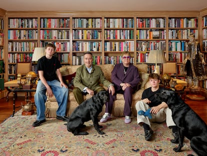 Elton John y David Furnish han intentado mantener a sus hijos Zachary, de 15 años, y Elijah, de 13, alejados del foco mediático durante muchos años. Pero ahora han querido mostrar un poco más de su intimidad: un retrato familiar se exhibe desde ahora en la National Portrait Gallery de Londres. La fotografía, capturada por Catherine Opie, retrata al matrimonio y a sus dos hijos junto a sus dos labradores negros, Joseph y Jacob, en la biblioteca de su lujosa finca en Old Windsor y pasará a formar parte de la colección de la institución de personas que han influenciado la historia y cultura del Reino Unido.“Tener a nuestra familia fotografiada por Catherine Opie y expuesta en la National Portrait Gallery es un gran honor. Somos grandes admiradores de su trabajo y estamos orgullosos de tener sus hermosas y conmovedoras imágenes en nuestra colección”, ha asegurado la pareja.