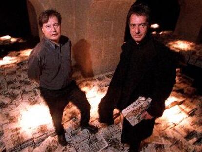 Jordi Balló (izquierda) y Frederic Amat, en el espacio que recrea la escena de Ciudadano Kane.