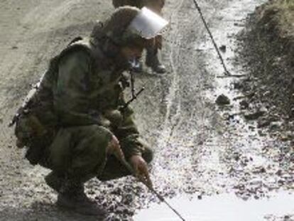 Soldados de élite yugoslavos buscan minas en la zona de seguridad en torno a Kosovo, ayer cerca de Presevo.