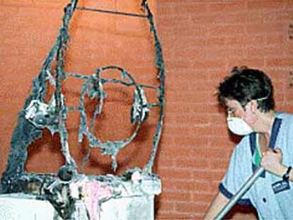 Estado en que quedó la obra quemada en el Aulario Norte del campus de Tarongers.