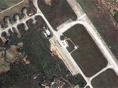 Imagen de la base china de Lingshui tomada por el satélite <i>Ikonos</i>, en la que se puede ver el avión espía estadounidense.