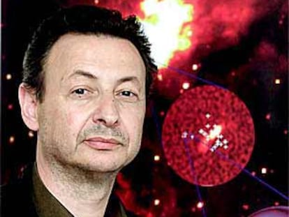 José María Torrelles, ante la imagen de la región de Cefeo donde se ha descubierto la esfera de agua.