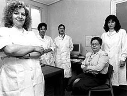 Trabajadoras de la empresa de inserción dedicada a la limpieza Altea, SL, en 1996.